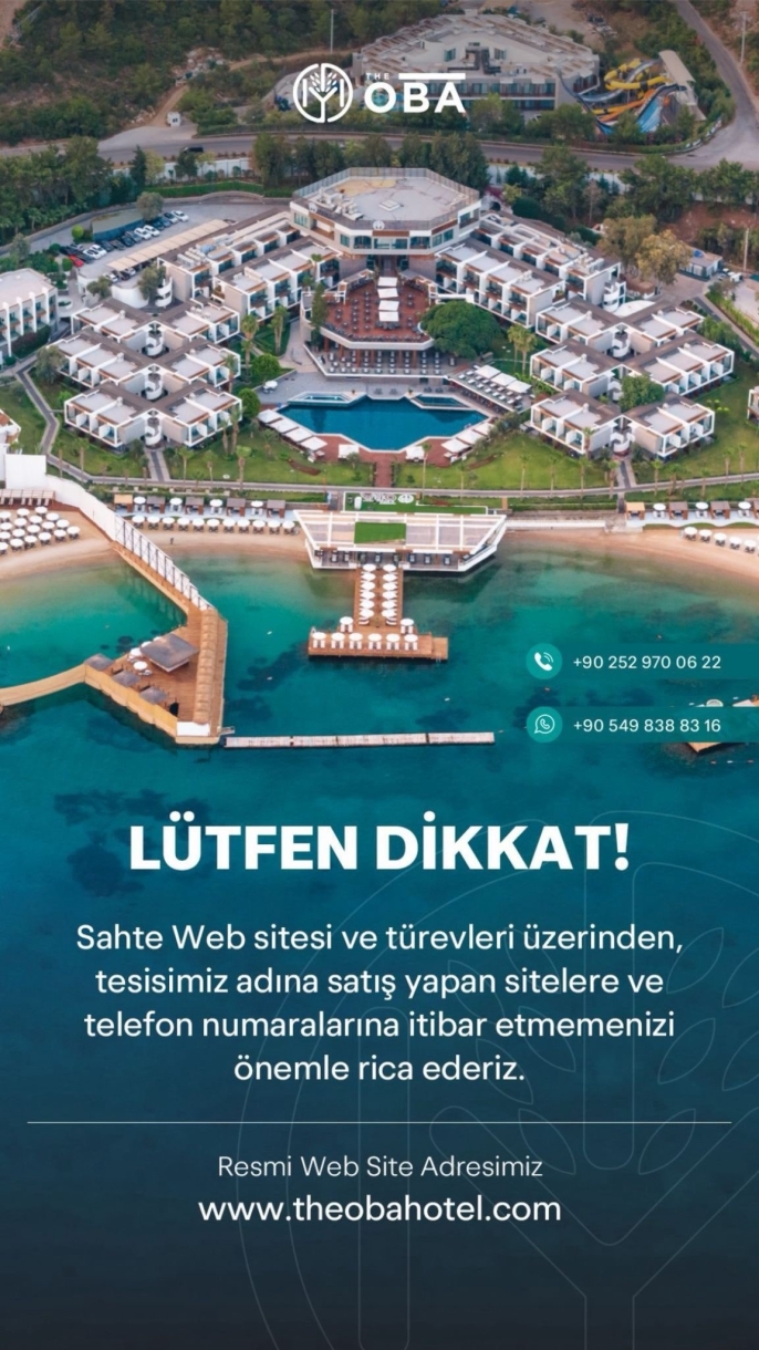 Bodrum'da tatil sezonunun yaklaşmasıyla birlikte sahte rezervasyon dolandırıcılığı vakalarında artış yaşanması, otel işletmelerini alarma geçirdi. Erken rezervasyon fırsatlarıyla tatil hayali kuran vatandaşları hedef alan dolandırıcılar, tatilcileri büyük bir hayal kırıklığına uğratıyor. Bu durum üzerine The Oba Otel yönetimi, hem bilgilendirme afişleri hazırladı hem de güvenlik önlemlerini artırma yoluna gitti.