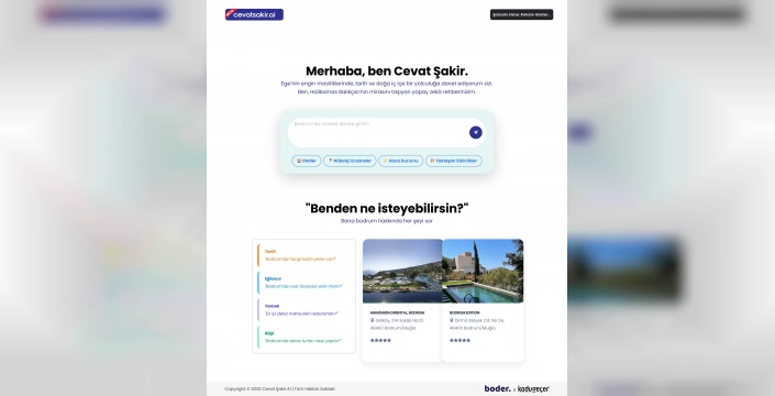 Bodrum’un tarihini, kültürünü ve yerel yaşamını teknolojinin sunduğu en ileri imkanlarla buluşturan “Cevat Şakir Kabaağaçlı Yapay Zekâ Destekli Dijital Rehber Projesi”, Bodrum Otelciler Derneği (BODER) öncülüğünde hayata geçiriliyor.
