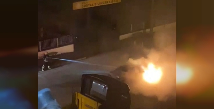 Bolu'da, Aşağı Soku Mahallesi'nde Sosyal Bilimler Lisesi önünde seyir halindeki bir Tofaş otomobil, motor kısmından alev aldı. Kısa sürede büyüyen yangın, aracın ön kısmını tamamen sardı ve dramatik görüntülere sahne oldu.