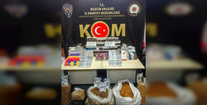 Bilecik İl Emniyet Müdürlüğü Kaçakçılık ve Organize Suçlarla Mücadele Şube Müdürlüğü ekiplerinin titiz çalışması sonucunda, Bozüyük ilçesinde kaçakçılıkla mücadele kapsamında bir operasyon düzenlendi. Yapılan aramalarda, toplamda 168 adet kaçak sigara, 18 adet elektronik sigara, 18 adet elektronik sigara likiti, 7 adet (toplam 175 gram) pipo tütünü, 18 adet (toplam 9 kilogram) nargile tütünü, 20 bin 80 adet doldurulmuş makaron, 3 bin 600 adet boş makaron ve tam 42 kilogram tütün ele geçirildi.