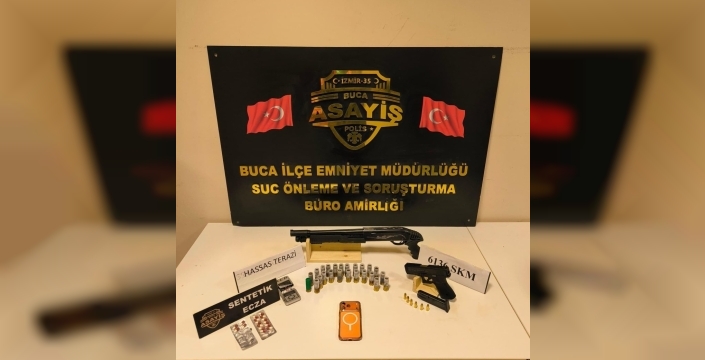 İzmir'in Buca ilçesinde polis ekipleri, ateşli silah bulundurduğu tespit edilen bir şüpheliye yönelik operasyon düzenledi. Operasyon sırasında ruhsatsız tabanca ve pompalı tüfek ele geçirilirken, bir kişi gözaltına alındı.