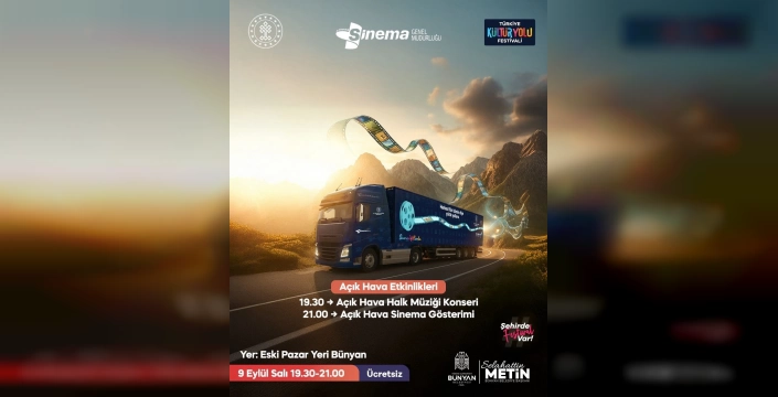 Kültür ve Turizm Bakanlığı'nın Türkiye Kültür Yolu Projesi kapsamında, 9 Eylül Salı günü saat 19.30'da Bünyan Eski Pazar Yeri'nde açık hava sinema gösterimi ve halk müziği konseri düzenlenecek.