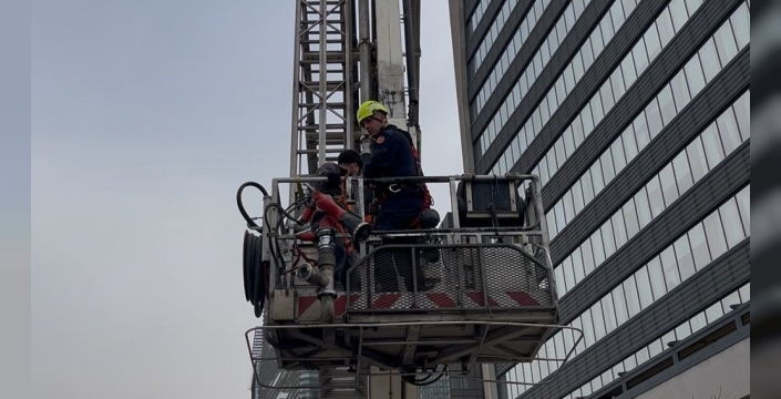 Bursa'da cam silerken mahsur kalan işçiler itfaiye tarafından kurtarıldı