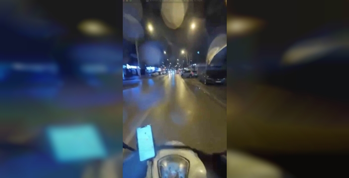 Kask kamerası görüntülerinde, cipin aniden yola çıkması, yağışın etkisiyle motosiklet sürücüsünün kontrolü kaybettiği ve panik anları net bir şekilde görülüyor.