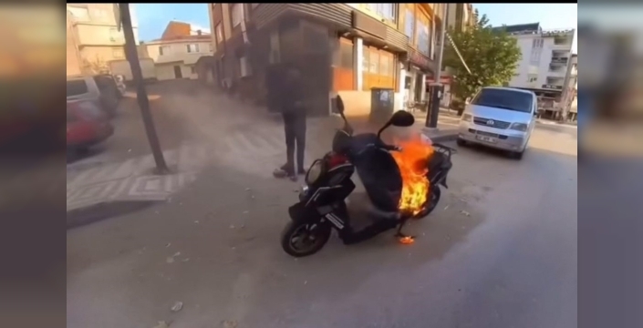 Çevredeki vatandaşlar durumu fark edip itfaiyeye haber verirken, bir kişi eline geçirdiği vileda kovasıyla motosikleti söndürmeye çalıştı. Kısa sürede alevler kontrol altına alınırken, olayın ardından polis ekipleri bölgeye sevk edildi.