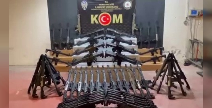Bursa Emniyet Müdürlüğü Kaçakçılık ve Organize Suçlarla Mücadele (KOM) Şube Müdürlüğü ekipleri, uzun süredir devam eden teknik ve fiziki takip sonucunda R.K. isimli şüphelinin Osmangazi ve Yıldırım ilçelerindeki iki ayrı deposuna eş zamanlı baskın düzenledi. Yapılan aramalarda toplam 118 ruhsatsız tüfek, 118 kısa ve 118 uzun şarjör bulundu.