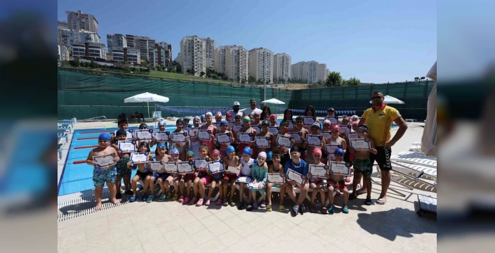 YÜZME EĞİTİMİ ALAN ÇOCUKLAR SERTİFİKALARINI ALDI