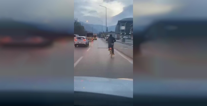 Bursa'da araç kamerası, yol ortasında bisiklet süren ve seyir halindeki otobüse tutunan gençlerin tehlikeli anlarını kaydetti. Uzmanlar, bu tür davranışların büyük kazalara yol açabileceği uyarısında bulundu.