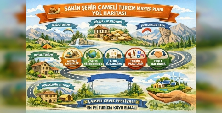 Çameli'nin 2026-2030 Turizm Master Planı yol haritası açıklandı. Plan, somut eylemleri, sorumlulukları ve paydaş beklentilerini dikkate alarak ilçenin sürdürülebilir turizm gelişimini hedefliyor.