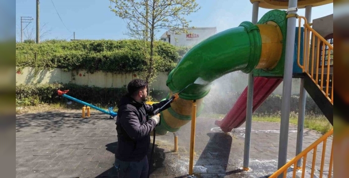 Çayırova parklarındaki oyun grupları çocukların sağlığı için titizlikle yıkanıyor