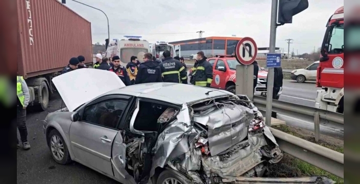 Çerkezköy'de tır otomobile çarptı, 3 kişi yaralandı