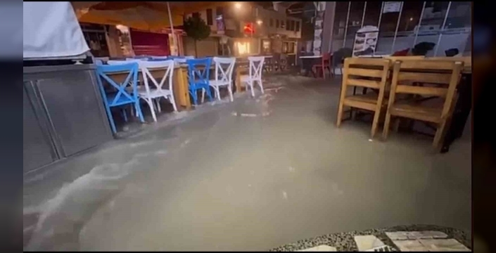 İzmir'in popüler tatil beldesi Çeşme, gece saatlerinde etkili olan şiddetli yağışın ardından büyük bir su baskınıyla karşılaştı. Yağmur sularının sele dönüşmesiyle ilçe merkezindeki cadde ve sokaklar adeta göle döndü.