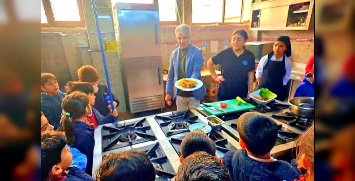 Çeşme'de ilkokul öğrencileri, eTwinning projesi kapsamında meslek lisesini ziyaret ederek sağlıklı beslenme üzerine hem teorik hem de pratik bilgiler edindi.