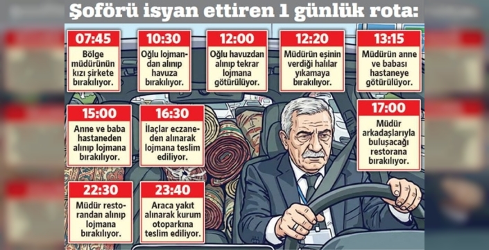 CHP Kocaeli Milletvekili Mühip Kanko, makam araçlarının özel işler için kullanıldığını gündeme getirdi. Kanko, bir bölge müdürünün makam şoförünün kendisine gönderdiği mesajı paylaşarak, şoförün her sabah müdürün kızını işe, oğlunu da havuza götürdüğünü belirtti.