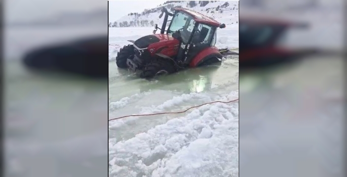 Ardahan'ın Çıldır ilçesinde, yüzeyi buz tutan Çıldır Gölü üzerinde kar temizleme çalışması yapan bir traktör, buzun kırılması sonucu suya gömüldü. Sürücü, olay anında kurtarılarak güvenliğe alındı ve durumunun iyi olduğu bildirildi.