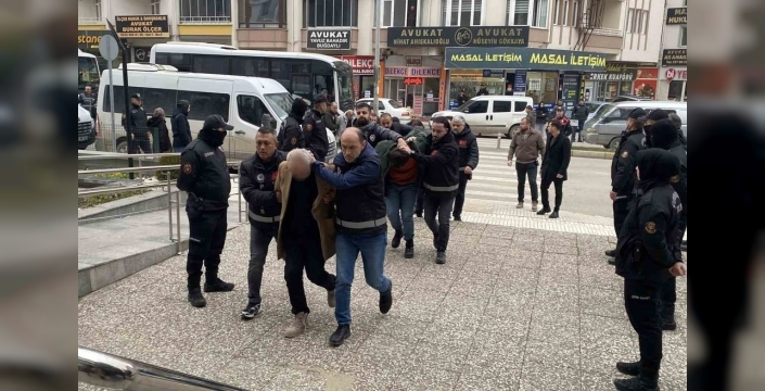 Çorum, Kırıkkale, Kırşehir, Yozgat ve Ankara'da düzenlenen operasyonda, 14 şüpheli gözaltına alındı. Aramalarda, 2 ruhsatsız tüfek, 1 kurusıkı tabanca, 44 fişek, 1 kılıç, 18 cep telefonu, 14 sim kart, 1 bilgisayar kasası, 30 çeyrek altın, 10 gram altın, 56 bin TL nakit para, 100 euro, 8 satış sözleşmesi ve çok sayıda boş senet ele geçirildi. Gözaltına alınan şüpheliler, emniyetteki işlemlerin ardından Çorum Adliyesi'ne sevk edildi.