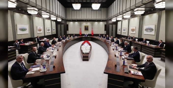 Kabine toplantısında, Türkiye'nin terörle mücadelesi ve "Terörsüz Türkiye" hedefi doğrultusunda yürütülen çalışmalar ele alındı. Milli Dayanışma, Kardeşlik ve Demokrasi Komisyonu'nun faaliyetleri değerlendirilirken, silah bırakma sürecine dair güncel raporlar askeri ve istihbarat birimleri tarafından sunuldu.