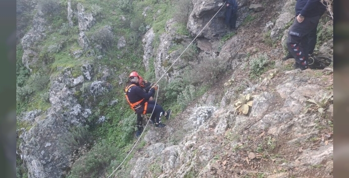 Manisa'da dağlık alanda mahsur kalan vatandaş, itfaiye ekiplerinin başarılı müdahalesiyle kurtarıldı. Vatandaşın sağlık durumunun iyi olduğu belirtildi.