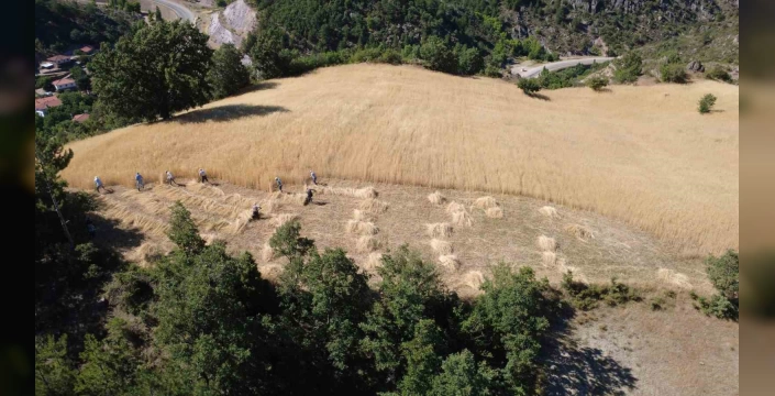 Manisa'nın Demirci ilçesindeki kırsal mahallelerde buğday, arpa ve çavdar yetiştiriciliğiyle uğraşan çiftçiler, hasatlarını geleneksel imece usulüyle gerçekleştiriyor.