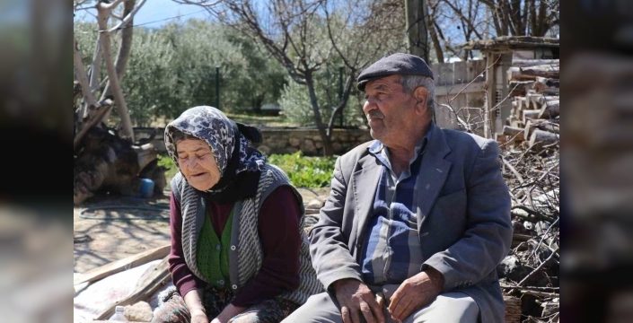 Denizli'de deprem sonrası yaşlı çift evlerinin önünde bekliyor