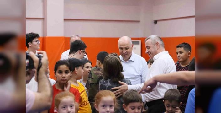 Atatürk Yüzme Havuzu'nda devam eden yüzme kursları da yoğun ilgi görüyor. Çocuklarını kurslara getiren veliler, bekleme alanından antrenmanları takip ediyor. Vali Coşkun, sporcu aileleriyle görüşerek, kurslarla ilgili istek, öneri ve taleplerini dinledi. Adalet Mahallesi'ndeki Merkezefendi Çok Amaçlı Spor Salonu'nda ise cimnastikten taekwandoya, judodan voleybola kadar çeşitli branşlarda eğitim alan sporcuların antrenmanları devam ediyor. Vali Coşkun, tüm branşlardaki sporcuları ziyaret ederek başarılar diledi.