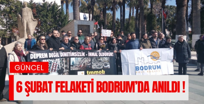 6 Şubat deprem felaketinin 2. yıl dönümünde depremde hayatını kaybedenler anıldı. MMOB (Türkiye Mühendisler ve Mimarlar Odası Birliği ) ve Bodrum Kent Konseyi üyeleri tarafından Bodrum Belediye meydanında gerçekleşen anma ve basın açıklamasına bir çok siyasi parti ve STK temsilcisi katılım gösterdi.