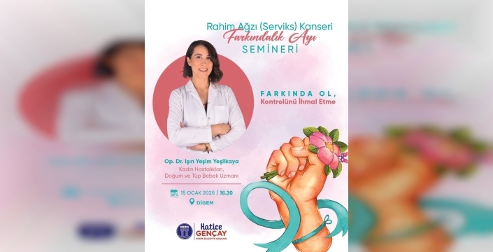 Didim Belediyesi, Rahim Ağzı (Serviks) Kanseri Farkındalık Ayı dolayısıyla bilgilendirici bir seminer organize ediyor. Bu etkinlikte, hastalığın erken tanısının ve düzenli sağlık kontrollerinin hayat kurtarıcı önemi vurgulanacak. Seminer, 15 Ocak 2026 Çarşamba günü saat 16.30'da DİGEM'de gerçekleştirilecek. Kadın Hastalıkları, Doğum ve Tüp Bebek Uzmanı Op. Dr. Işın Yeşim Yeşilkaya, sunumunda serviks kanserinin risk faktörleri, korunma yöntemleri, tarama süreçleri ve erken teşhisin önemi hakkında detaylı bilgiler verecek. Didim Belediye Başkanı Hatice Gençay, tüm kadınları bu önemli etkinliğe davet ederek, "Bu tür bilinçlendirici çalışmalar, hem bireysel hem de toplumsal sağlık açısından büyük önem taşıyor. Etkinliğimiz, kadınlarımızın kendi sağlıklarını koruma konusunda daha bilinçli adımlar atmalarına katkı sağlayacaktır" ifadelerini kullandı.