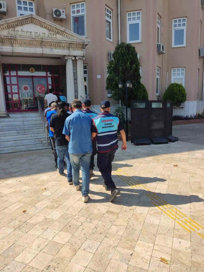Didim İlçe Jandarma Komutanlığınca tarihi eser kaçakçılığına yönelik çalışma başlatıldı. Balat Mahallesinde sit alanı içesinde tarihi eser bulmak amacıyla kaçak kazı yapan A.K.(49), Y.E.Ç (39), E.A. (54), Ü.B. (31), İ.T. (48), V.B. (48) isimli şüpheli şahıslar suçüstü yakalandı. Kazı alanında ve araçlarda yapılan aramalarda muhtelif kazı malzemeleri ele geçirildi. İşlemlerinin ardından adli makamlara çıkarılan şüphelilerin tamamı tutuklanmasına müteakip Ceza İnfaz Kurumuna teslim edildi.