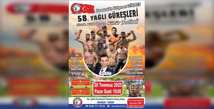 Sinop'un Dikmen ilçesinde 20 Temmuz'da düzenlenecek olan 58. Dikmen Yağlı Güreşleri ve Sırık Kebabı Kültür Festivali, güreş heyecanı ve yöresel lezzetleri bir araya getiriyor.