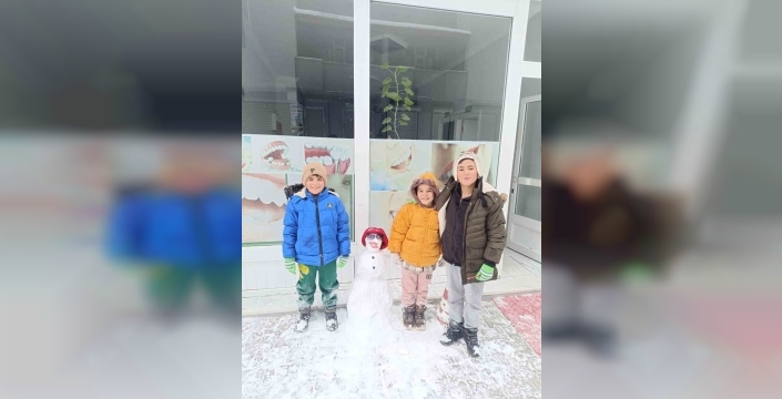 Kar yağışını fırsat bilen çocuklar, soğuk havaya rağmen sokaklara dökülerek birbirinden güzel kardan adamlar yaptı. Arkadaşlarıyla birlikte karın tadını çıkaran minikler, oyunlarla doyasıya eğlendi.