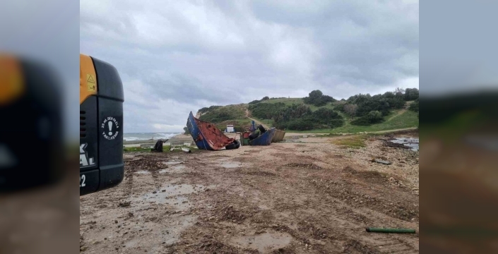 Demircili Sahili'nde asbestli hurda geminin denizde parçalanması üzerine jandarma inceleme başlattı. Çevreye zararlı maddeler saçan gemi için cezai işlem uygulandı.