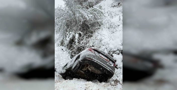 Düzce'de kar nedeniyle kayganlaşan yolda kontrolden çıkan otomobil kanala uçtu. Kazada 5'i çocuk 8 kişi yaralandı, sağlık durumlarının iyi olduğu öğrenildi.