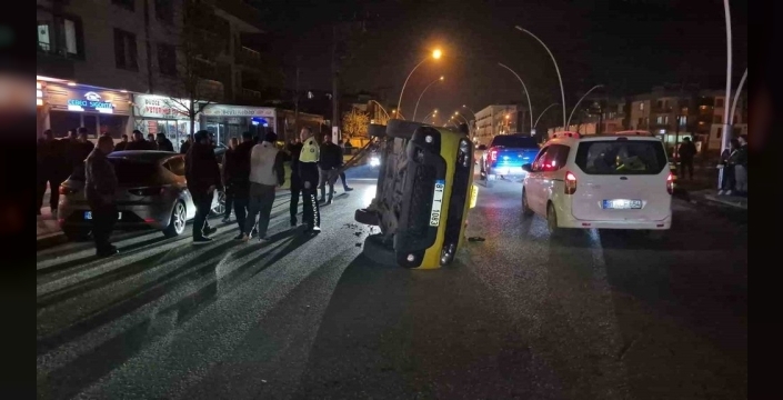 Düzce'de trafik kazası: Taksi yan yatıp trafiği kilitledi!