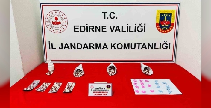 Edirne'de jandarma, uyuşturucu ticareti yapan bir karı-kocayı suçüstü yakaladı. Evde yapılan aramada 475 adet uyuşturucu hap ele geçirildi.