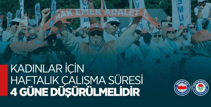 Eğitim Bir-Sen, kadın kamu çalışanlarının haftalık çalışma süresinin 32 saate düşürülmesi ve çalışma gününün 4'e indirilmesi çağrısında bulundu.