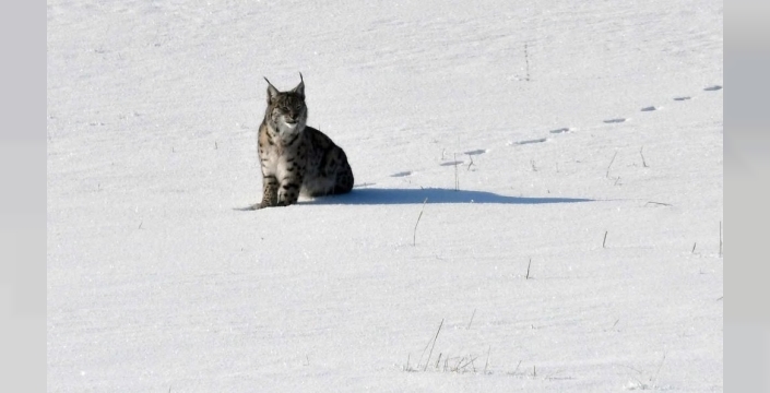 Bir süre kar üzerinde ilerleyen vaşak ailesi, daha sonra gözden kayboldu. Bu nadir görüntüler, bölgedeki yaban hayatına dikkat çekiyor.