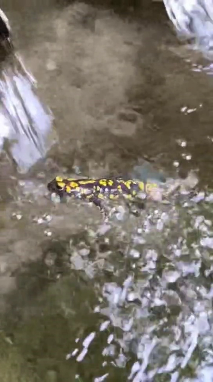 Elazığın Palu ilçesi Beyhan beldesinde bir vatandaş, çeşmenin oluğunda nadir görülen sarı benekli semenderi fark etti. Ardından cep telefonunu çıkaran şahıs, olukta yüzen semenderi uzun süre görüntüledi.