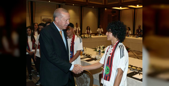 Cumhurbaşkanı Recep Tayyip Erdoğan, Cumhurbaşkanlığı Külliyesi'nde Turkcell Kadın Futbol Süper Ligi'ne yükselen Yüksekovaspor Kadın Futbol Takımı'nı kabul etti. Erdoğan, takımın başarısını kutlayarak kadınların spordaki güçlü varlığını vurguladı.Erdoğan, Yüksekovaspor Kadın Futbol Takımı'nı kabul etti