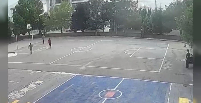 Olay anı, güvenlik kamerası tarafından kaydedildi. Görüntülerde, okul müdürü Oğuz Kürşat Onay ve yanındakilerin aracın hareketlenmesi üzerine bahçe duvarından atladıkları ve aracın durdurulması anları net bir şekilde görülüyor.