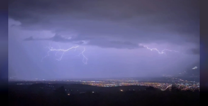 Erzincan'da etkili olan sağanak yağış, gece saatlerinde kenti adeta gündüze çevirdi. Gökyüzünü aydınlatan şimşek ve yıldırımlar, şehir genelinde görsel bir şölen oluşturdu.