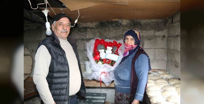 Erzurum'un Oltu ilçesinde yaşayan Abdullah Başar, 50 yıllık eşi Aynur Başar'a Sevgililer Günü'nde 'Oltu güzelse sebebi sensin Aynur' notuyla çiçek göndererek romantik bir sürpriz yaptı. Çift, 50 yıllık evliliklerinin sırrının birbirlerini k