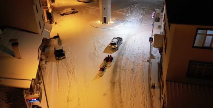 Akşam saatlerinde yoğun kar yağışının ardından ilçe merkezi beyaza büründüğünde, gece geç saatlere kadar araç lastikleriyle kayan gençleri gören TUYEG Dernek Müdürü Musa Han ve İHA Muhabiri Taner Sarı, harekete geçti. Gece yarısı, derneğe ait kano ve güvenlik ekipmanları temin edilerek, kanolar bir aracın arkasına bağlandı. Ardından, öğretmenler ve memurlardan oluşan bir grup ile ilçe gençleri, normalde göl ve nehirlerde kullanılan kanolara binerek trafiğe kapalı cadde ve sokaklarda kar üzerinde kaymanın keyfini çıkardı. Bu sıra dışı etkinlik, katılımcılara hem eğlence hem de eşsiz anlar yaşattı.