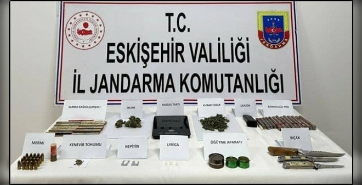 Eskişehir İl Jandarma Komutanlığı'nın yaptığı istihbari çalışmalar sonucunda, Çifteler ilçesinde iki kişinin araç içinde uyuşturucu kullandığı bilgisi elde edildi. Şüphelilerin tespit edilmesinin ardından, araçları ve ikametlerinde yapılan arama neticesinde birçok uyuşturucu madde ve silah ele geçirildi.