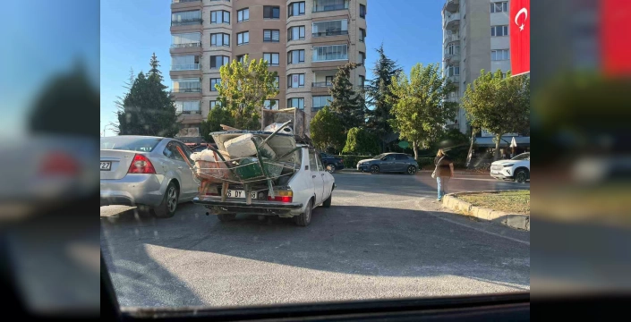 Araç sürücüsü, bagaj kapısını açık bırakarak, el arabaları ve çeşitli inşaat malzemelerini bagaja doldurmuş, hatta tavanına da demir bir malzeme yerleştirmişti. Bu malzemeleri iple bağlayarak trafiğe çıkan sürücü, hem kendi güvenliğini, hem de diğer sürücüleri tehlikeye attı.