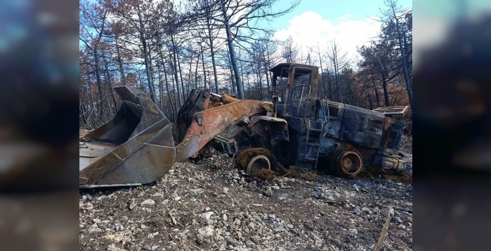 Eskişehir orman yangınlarında kül olan iş makinesi enkazı kaldırıldı