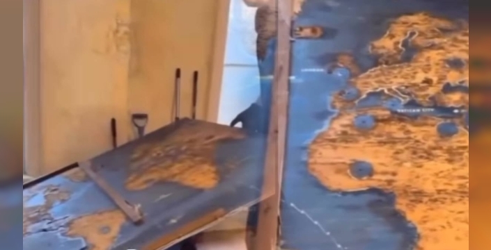 Bir ev sahibi, evinin oturma odasında tadilat yaparken beklemediği bir sürprizle karşılaştı. Duvar kaplamasının altında kalın bir kağıt dokusu fark eden ev sahibi, kaplamayı kaldırdığında neredeyse tüm duvarı kaplayan 1940 tarihli, detaylı bir dünya haritasını ortaya çıkardı. Haritanın yıllar önce özel olarak yerleştirildiği ve sonrasında duvarın kapatıldığı anlaşıldı.