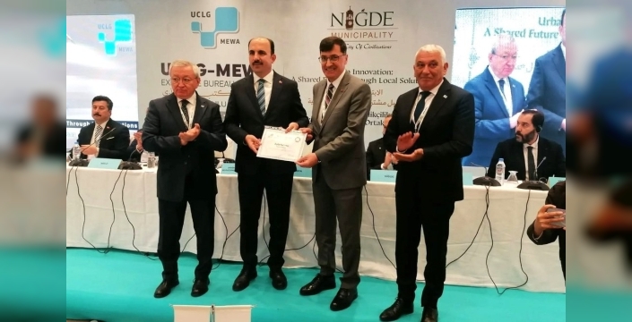 Başarı belgesi, UCLG-MEWA Yönetim Kurulu Toplantısı’nda takdim edilirken, toplantıda sürdürülebilir kalkınma hedefleri çerçevesinde yürütülen çalışmalar, uyum politikaları ve şehirlerin uluslararası platformdaki rolleri masaya yatırıldı. Belediyelerin stratejik planlarının küresel hedeflerle uyumu da ele alınan önemli konular arasında yer aldı.