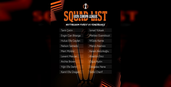 Fenerbahçe'nin Nottingham Forest maçı için belirlediği kamp kadrosunda şu isimler bulunuyor: Tarık Çetin, Engin Can Biterge, Hulusi Efe Ceylan, Nelson Semedo, Mert Müldür, Levent Mercan, Archie Brown, Yiğit Efe Demir, Kamil Efe Üregen, İsmail Yüksek, Matteo Guendouzi, N’Golo Kante, Alaettin Ekici, Kerem Aktürkoğlu, Oğuz Aydın, Marco Asensio, Dorgeles Nene ve Sidiki Cherif.