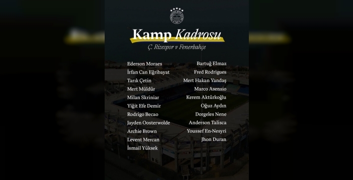 Fenerbahçe'nin Rize kafilesinde şu isimler bulunuyor: Ederson, İrfan Can Eğribayat, Tarık Çetin, Mert Müldür, Milan Skriniar, Yiğit Efe Demir, Rodrigo Becao, Jayden Oosterwolde, Archie Brown, Levent Mercan, İsmail Yüksek, Bartuğ Elmaz, Fred, Mert Hakan Yandaş, Marco Asensio, Kerem Aktürkoğlu, Oğuz Aydın, Dorgeles Nene, Anderson Talisca, Youssef En-Nesyri ve Jhon Duran.