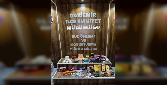 İzmir'in Gaziemir ilçesinde polis ekipleri tarafından düzenlenen bir operasyonda, gümrük kaçağı sigara, puro ve cinsel içerikli ilaçlar ele geçirildi.